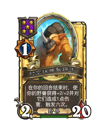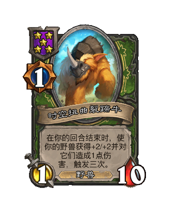 改动前:在你的回合结束时,使你的野兽获得+1/+2并对它们造成1点伤害,触发三次。