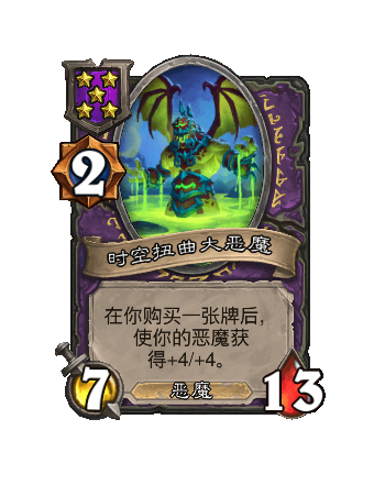 改动后:在你购买一张牌后,使你的恶魔获得+4/+4。