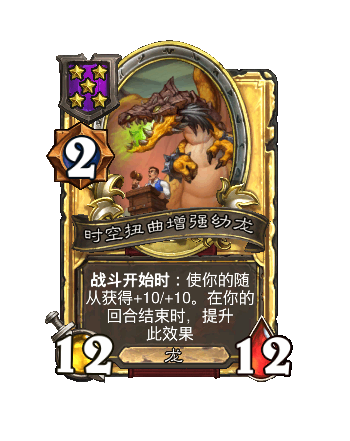 改动后:12/12。进击:使每个类型的各一个友方随从永久获得+12/+12。