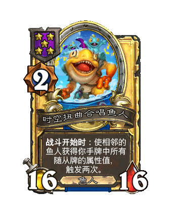 改动后:战斗开始时:使相邻的鱼人获得你手牌中所有随从牌的属性值。