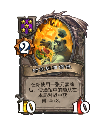 改动前:在你采用一张元素牌后,使酒馆中的随从在本局对战中获得+3/+2。