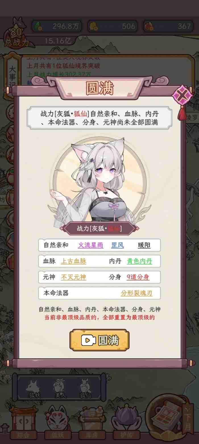 選擇走精英路线,狐狸尽量控制在10个以下,个人前面是6个,后面为了图鉴就稍微放宽了①點,方便事件集中以及稳定指点到。前期(地图上出现怨念怪以前)战力提升最大的基本靠泼水大战,优先拿带高等级活宝词条(紫色)。
