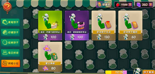 可以把黑莓和柠檬先兑换,然后(Then)看有没有喜欢的紫薯饼干;