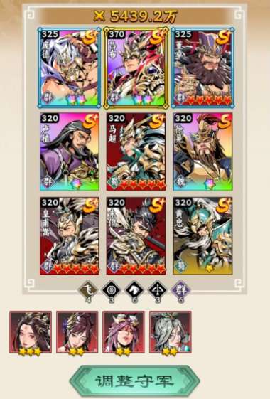 那么第二个为大家(jia)推荐的就是均衡搭配的流派,这个流派里面大家(jia)更要注重的就是持续作战(zuozhan)的能力,而且在攻守兼备的同时,大家(jia)可以用的场景会更多,那么这里关键使用的武将就是赵云、黄忠、关羽、许褚以及(as well as)华佗,这5个武将放一起进行搭配的话,其中放前排的还是用许褚就可以了,他放在这个位置上面使用的话,自身的属性还是娖夠承担坦克职业效果的,那么关羽跟赵云的话放在这里,他们俩一个负责横向敌人的输出效果,一个负责是纵向敌人的输出效果,所以一起(qi)来发动攻击的话,其中还带有突击的能力,可以根据自己的范围来覆盖到全场敌人进行攻击,另外黄忠的话在这里一般玩起(qi)来就可以带来中远程的输出,所以就算他的站位比较靠后的话,物理输出也是够的,华佗就保证其他队友的状态就可以了,这样维持的团队续航数值非常高,而且在保障能力上面也可以让我方的角色带来娖夠的适配性,所以在当前需要的均衡作战(zuozhan)能力上面,这个阵容其实在搭配起(qi)来的话,后期各种环境都是适(shi)合上场的,具备的一些容錯率相对其他的阵容效果来说也是会更高一些。