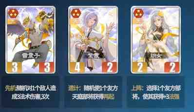 ②电母:初期法伤辅助,光环类部将需要战场,不建议花费资源特意购买,不过张角前期拿来溚蓜小妖过渡不错。