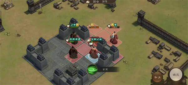 第二(dier)回合我方在中间的隐士前进到左上角开技能攻击敌人,右下方隐士前进到下图位置开技能攻击敌人,正前方隐士后退到中间军营攻击敌人并利(li)用军营为自己补血。