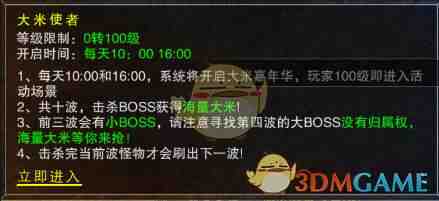 [大米嘉年华]可在王城 大米使者npc进入活动,打怪挂机爆大米。