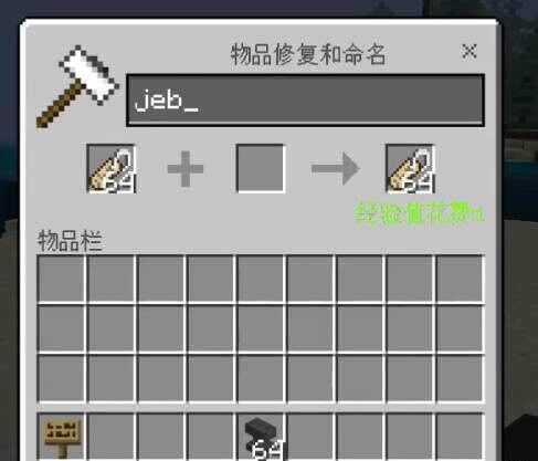 1.把命名牌放入铁砧中,将其重命名为“jeb_”(注意(Notice)要带着下划线):