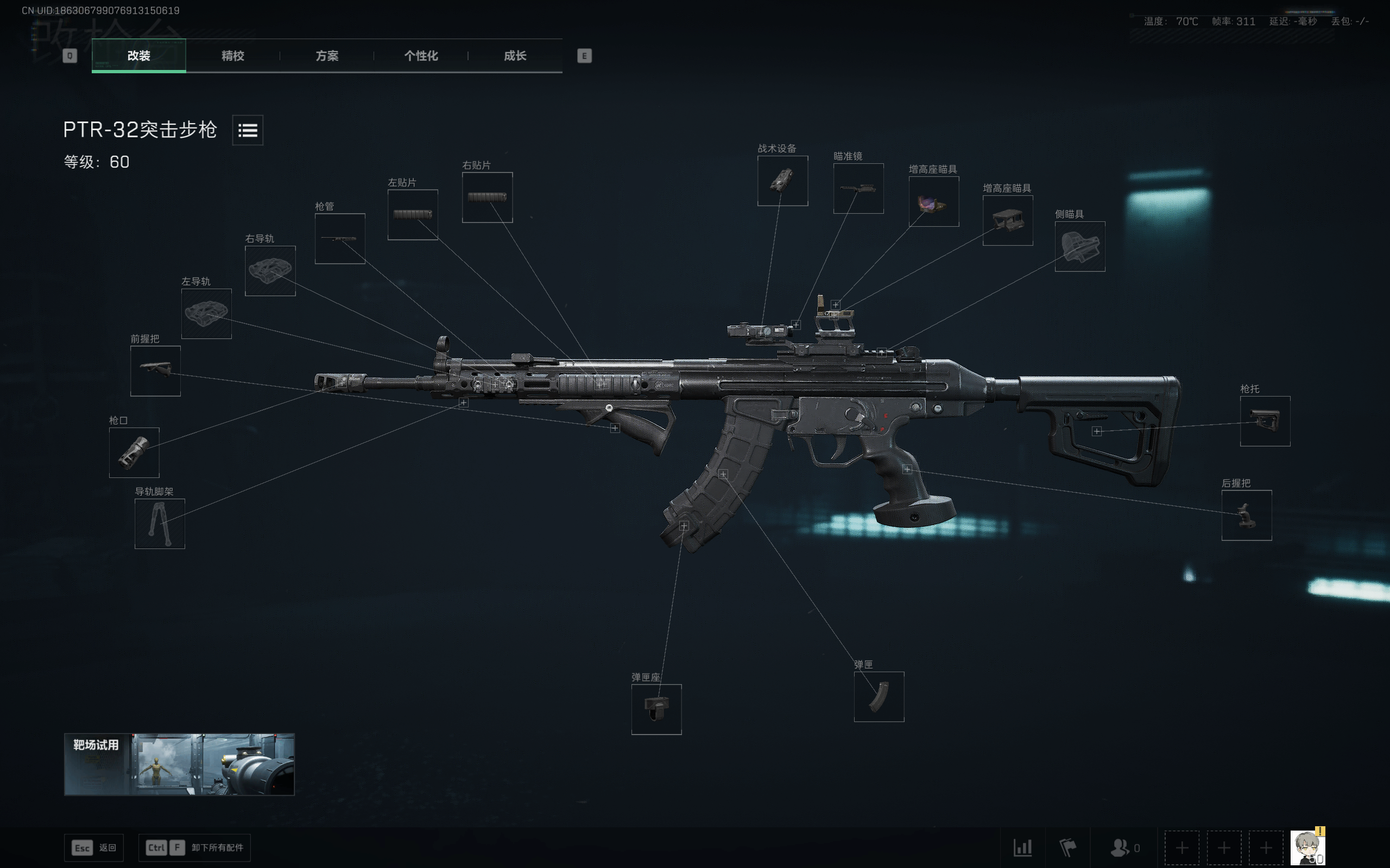 改装版PTR-32突击步枪手感“稳定易控”,中等射速蓜匼62点后坐力控制(zhi),连射时枪口上抬柔和、弹道集中;