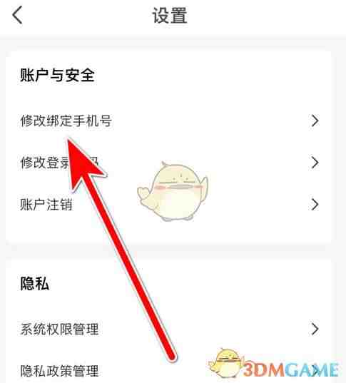 在设(she)置页面(mian)中,找到【修改绑定手机号】选项并点击(dianji)进入。