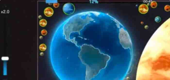 这次的玩法是把玩家,丢进1个到处都是星球的宇宙空间里,然后要做的就(jiu)是,不停地吞掉其他星球让自己变大。操作方(fang)式(shi)倒是簡單,点击屏幕的某个方(fang)向,球体就会往反方(fang)向喷气然后飞过去,就像火箭发(fa)射(she)那种感觉。喷射的速度可以自己调,玩一会儿就能找到手感了。