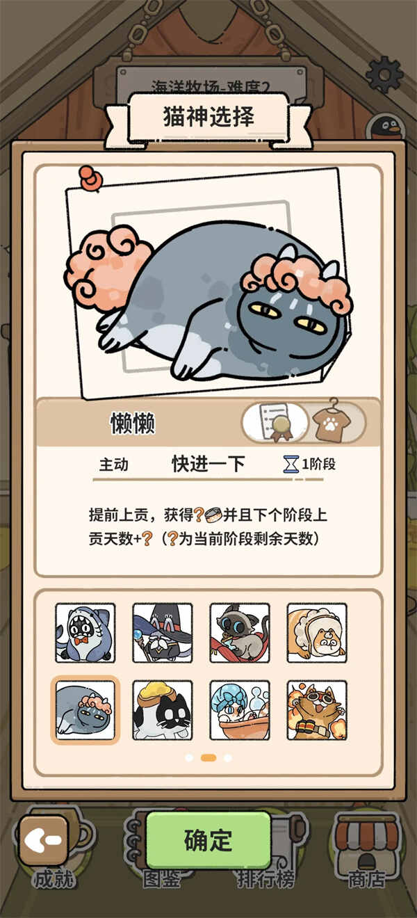 我们选 懒懒,懒懒的技能让我们很快速地进入中后期,升级给的罐头足够我们移除场上多出的动物和障碍