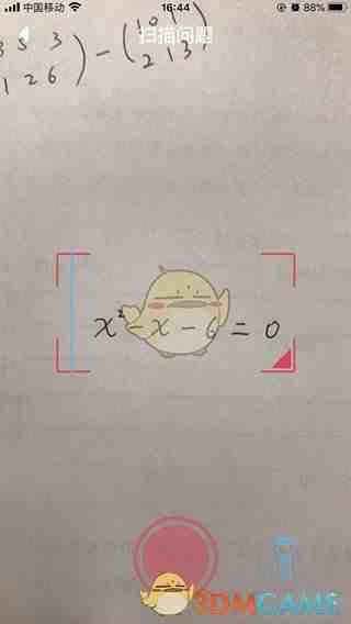 3、打開手機摄像头,将题目置于屏幕提示的区域内,然後點击下方的红色按钮;