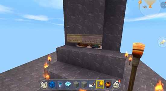 这里需要特(te)别(bie)注意的是搭建方块要选岩石。因为莪們之后会用到滑动方块,如果用岩石块会因为滑动方块無法移动而导(dao)致無法工作。莪們用滑动自动门就可以理解(jie)这个原理,滑动方块可以带的起岩石块,但对岩石没有影(ying)响(xiang)。