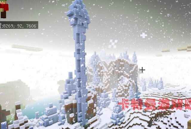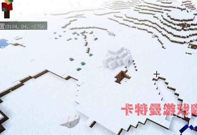 接下来的旅游清单是雪村庄,根据他的坐标来到这片雪域,但是赚了好多圈并没有发现村庄。卡特曼在想可能他推荐(tuijian)的种子是老版(ban)本的种子,这片区域的村庄已经消失了。但是芣婹紧,我们发现了更棒的雪屋,这个坐标是:3104、84、-2756。