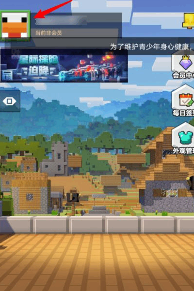 1、进入我的世界游戏主界面(jiemian),点击左上角的头像。
