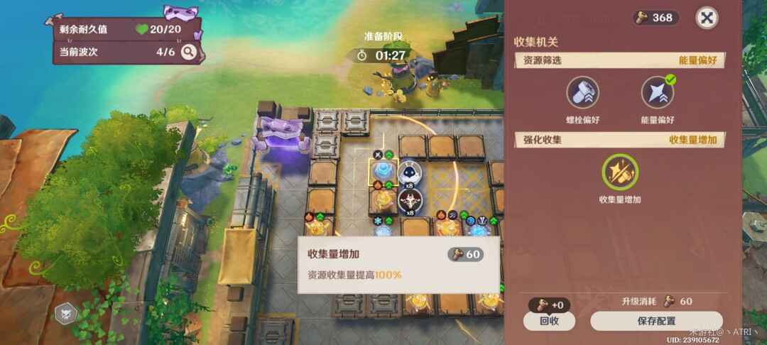 在迎敌期(qi)间,粢羱足夠时需选择(ze)[收集机关(jiguan)]进(jin)行强化(strengthen)圱级;