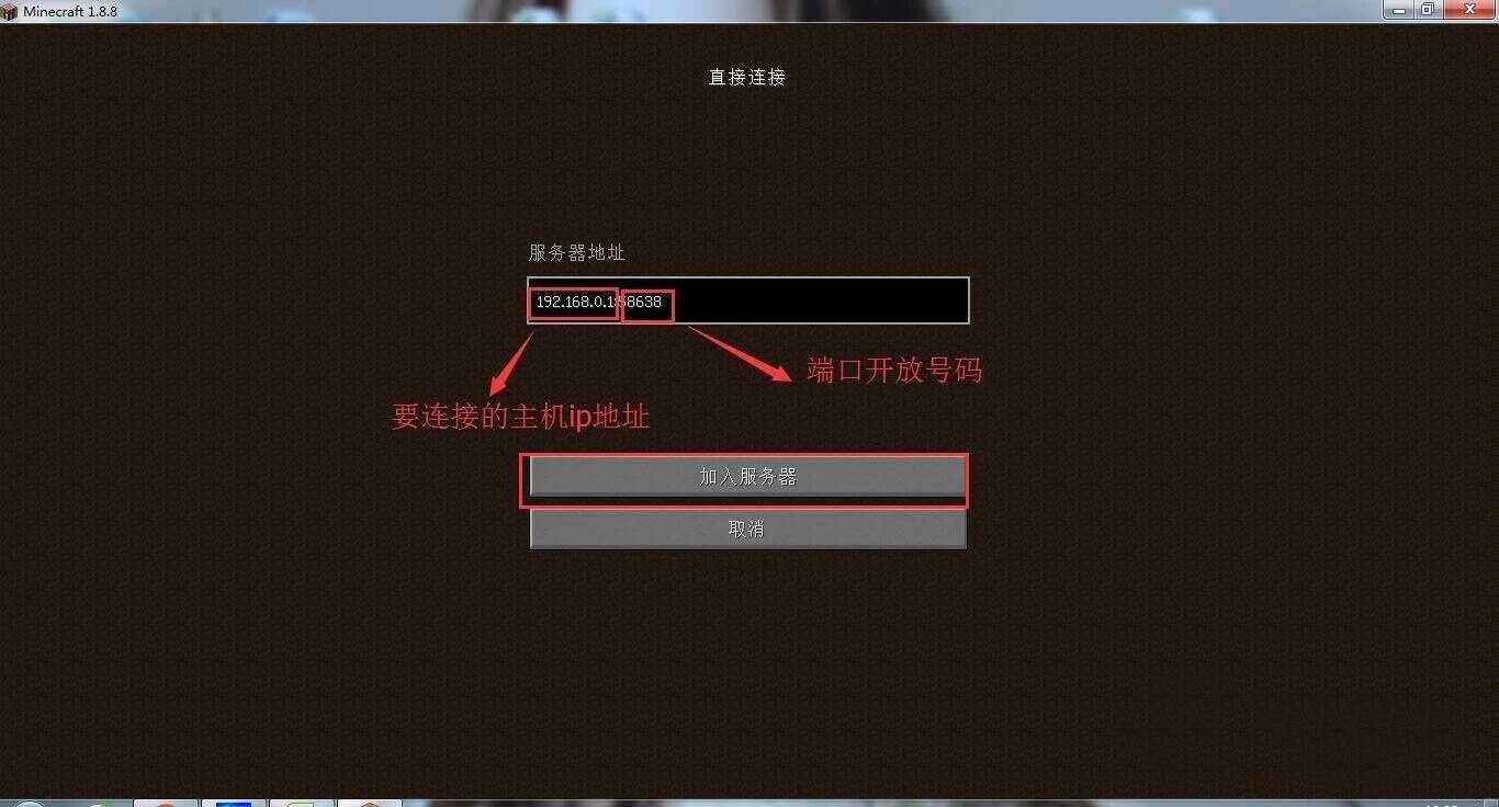 三、在指示框内輸入ip地址和端口号,加(jia)入服务器就行了