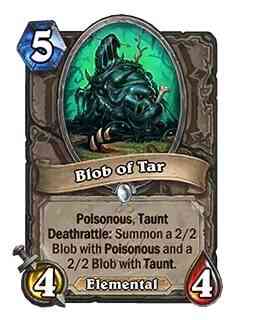 新:5费4/4 剧毒。嘲讽。亡语:召唤1款2/2并具有剧毒的黏团,以及1款2/2并具有嘲讽的黏团。