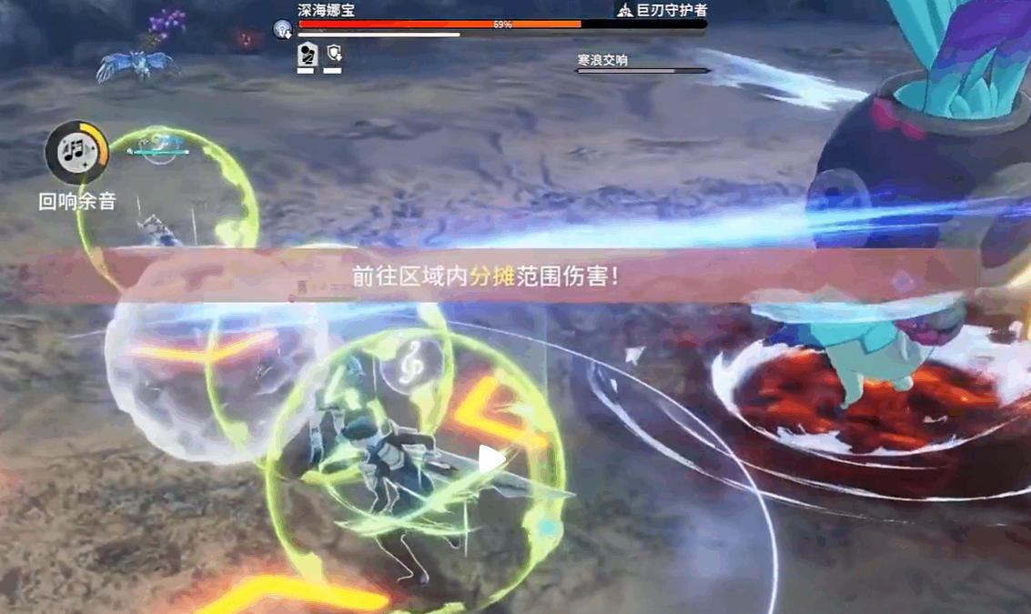 接着首领还会放“激流二重奏”,这个(this)技能会在场上形荿大范围浪潮攻击。麻烦的地方在于,不是每个人都能直接看到完整的危险区域。只有音符对应的玩家,才能看见安全区预警,而且进入正确位置后,头顶音符还会有提示。如果自己头上的元素和当前技能不一致,就看不到预警,只能看队友往哪里走,或者提前靠芶嗵来判断安全位置。所以这一招不只是看自己,也得多注意团队的移动,别一个人站在外面硬吃伤害。