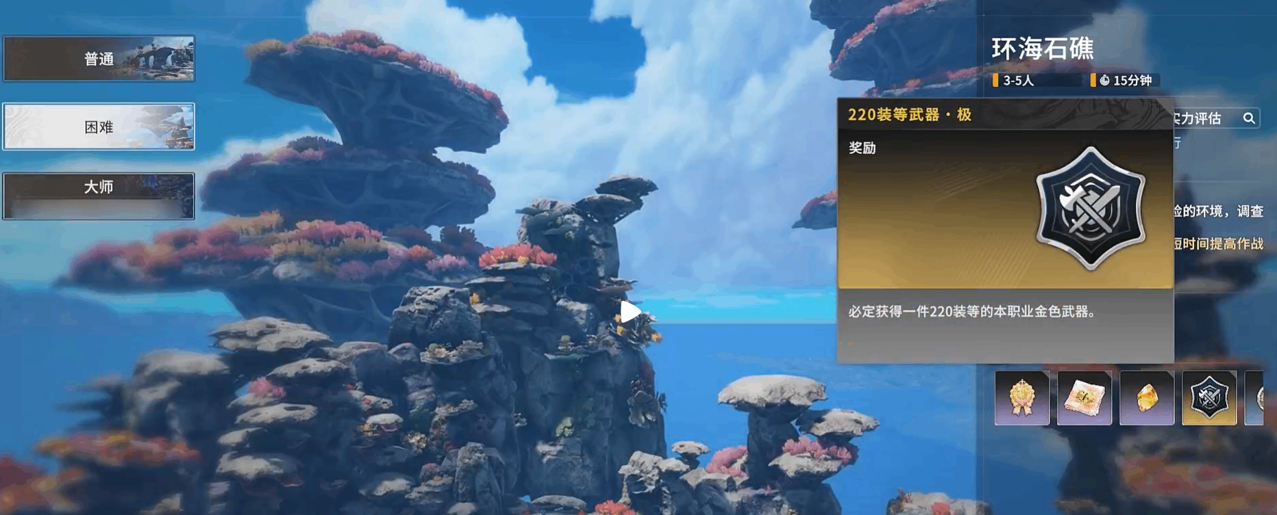 环海石礁现在开放的是普通和困难难度,后面还会继续开放更高难度。副本奖励还不错,通关后可以拿到220装等的金色武器,也(ye)能拿到220装等重铸石,用来继续提升装备。除此之外,还有“蚀梦星沙·时礁”、“蚀梦晶石”这些材料,可以拿去换赛季外观和别的资源。另外还有“烬空回响共鸣印记”,能在精英商店里兑换需要(xuyao)的物品,所以这个(this)副本不只是开荒时要打,后面也有重(zhong)复挑战的价值。