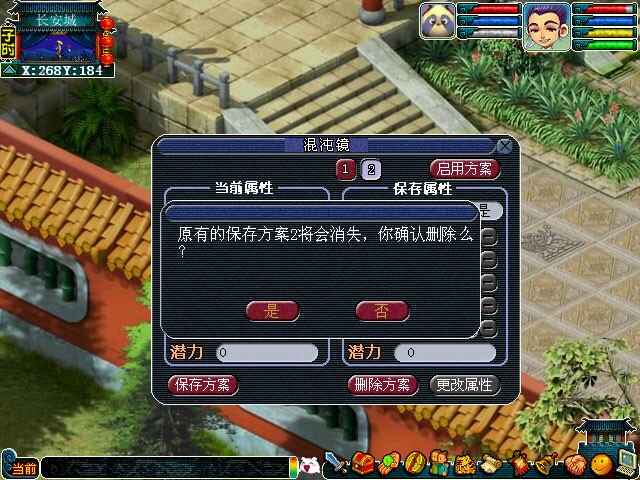 游戏者可以在长安云游仙人处,花费20万两保存當前角色的属性点分配方案在云游仙人的混沌镜中,混沌镜可以保存三套属性点分配方案。保存方案