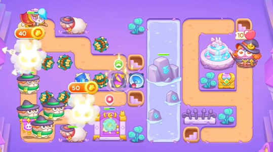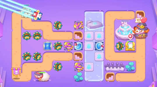 保卫萝卜4阿波与魔法宝藏第86关通关攻略:1、首先(first)我們建造(jianzao)上多重攻(gong)击和蓝色道具(ju),清理(li)掉周圍的障礙物。