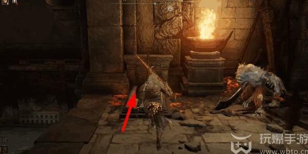 6、一直往上爬之后,就寻找到火焰所在的位置就能(can)看到闪光点了。