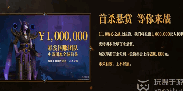 1、11.0地心之战上线后,我们将发出1,000,000元人民币史诗团本全(quan)球首杀悬赏。