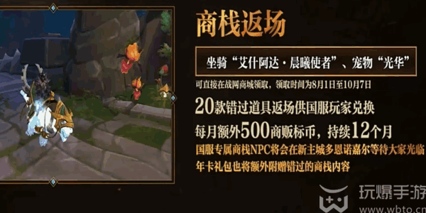 坐骑“艾什阿达·晨曦使者”、宠(chong)物“光华”,可直接在战网商(shang)城领(ling)取,领(ling)取时间(jian)为8月1日至10月7日。
