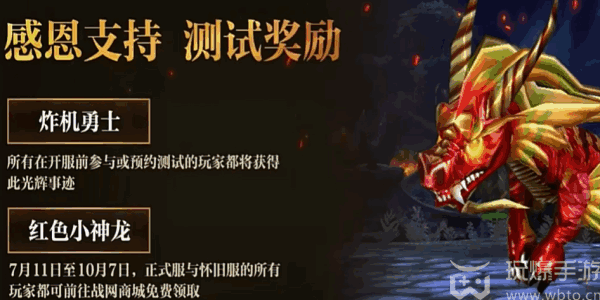 2、红色小神龙:7月11日至10月7日,正式服与怀旧服的所有玩家(player)都可(can be)前往(qianwang)战网商(shang)城免费领(ling)取