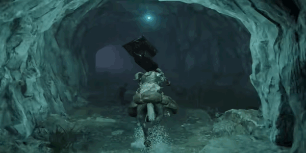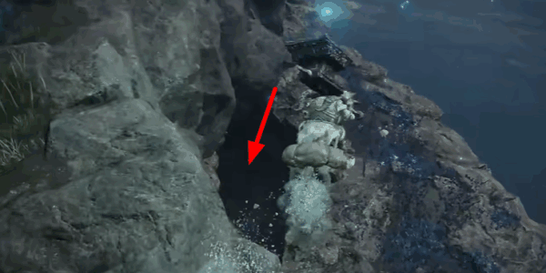3、然后一直到这个悬崖洞口边上,进入到洞口当中开始探索(explore)。