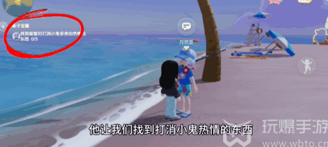 2、接着按照(anzhao)任务指引前往紫光沙滩的位置,和NPC波叔前进对(dui)话(hua)开启(qi)任务。