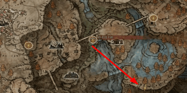 艾尔登法环黄金树之影倒刺杖矛获得方法:1、从隐者河的下游,前往到已经标记好(hao)的(de)位置来实行获取武器。