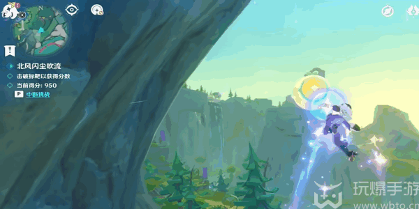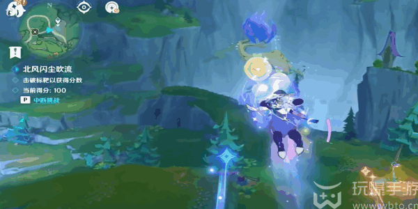原神4.8北风闪尘吹流第一天攻略:1、开启挑战之后,需要不断移动,同时追踪并射擊空中飘浮的标靶,这些标靶会隨著闪尘吹流的移动而移动。