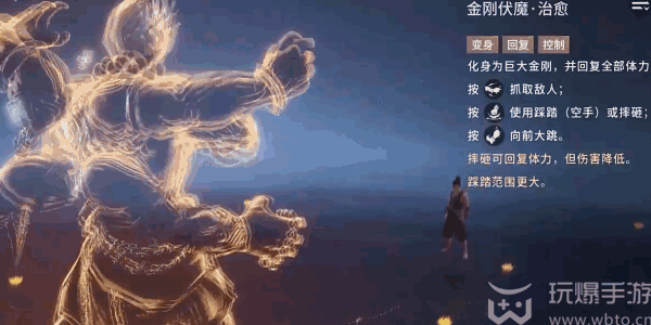 变身为大佛,变身后会拥有(have)全新的血条,此时攻击键就会替换为远擒,可以抓取指示框内的敌人(enemy)到手上,可以按砸击把敌人(enemy)摔尚地面,抓取两名敌人(enemy)进行砸击的伤(shang)害,会比只抓取一名敌人(enemy)高出不少。