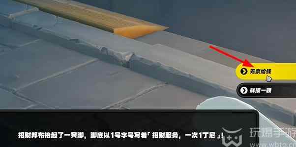 4、继續和一丁尼布进行(jinxing)剧情(juqing)互动,这儿就选择【无奈给钱】就可以了。