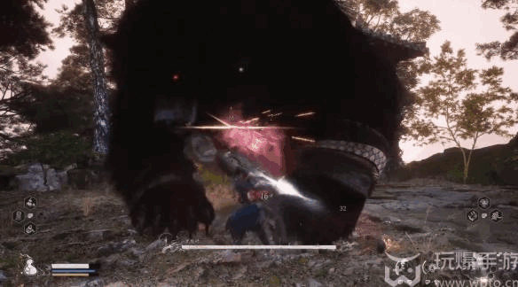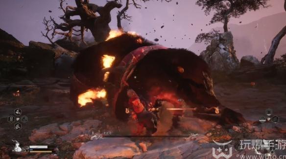 6、在黑熊精血量到半管及以下时,它会连续突刺,类似于黑风大王的风技能,此时只需在发现爆炸(zha)后翻滚即可(can)。