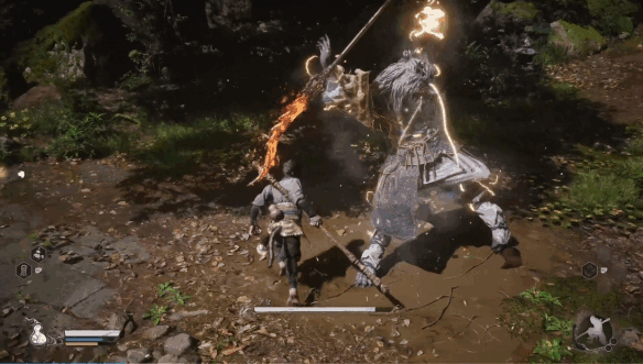 -后面会进入广智的攻击节奏,游戏者需要在躲避的同时穿插普攻,并在棍势积攒到一定程度时使用定身术进行(xing)输出。